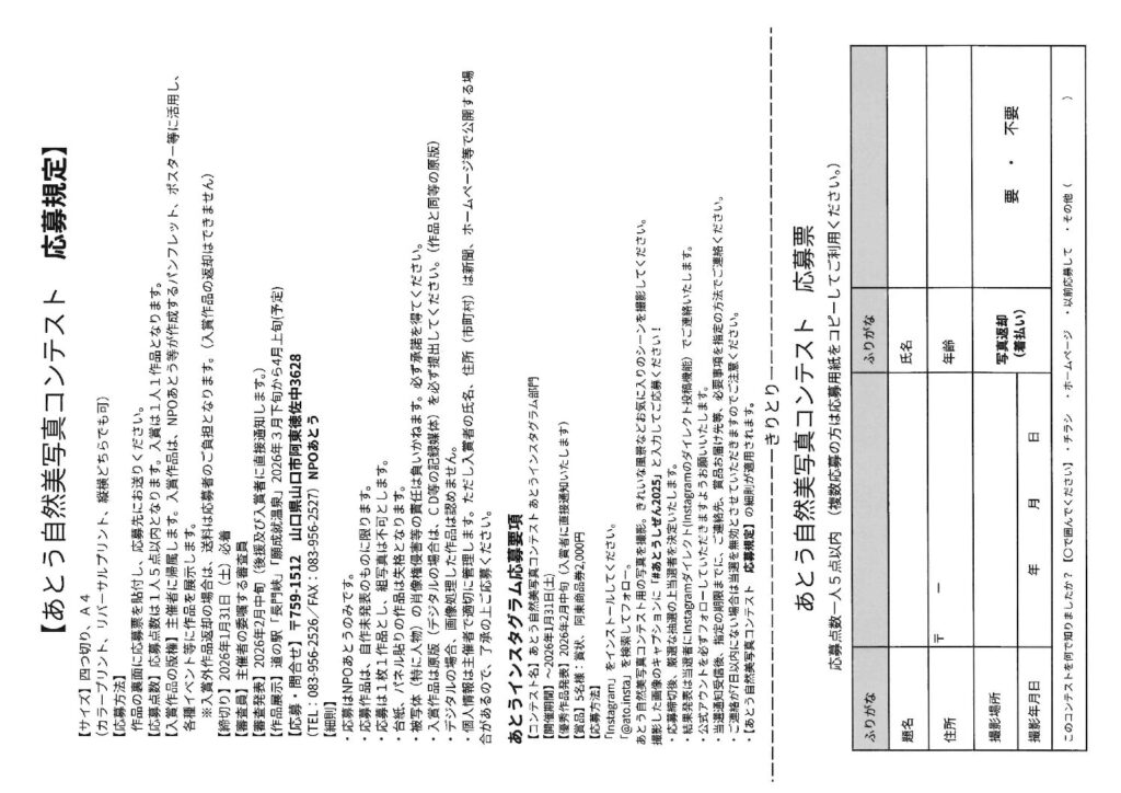 ・【あとう自然美写真コンテスト 応募規定】の細則が適用されます。