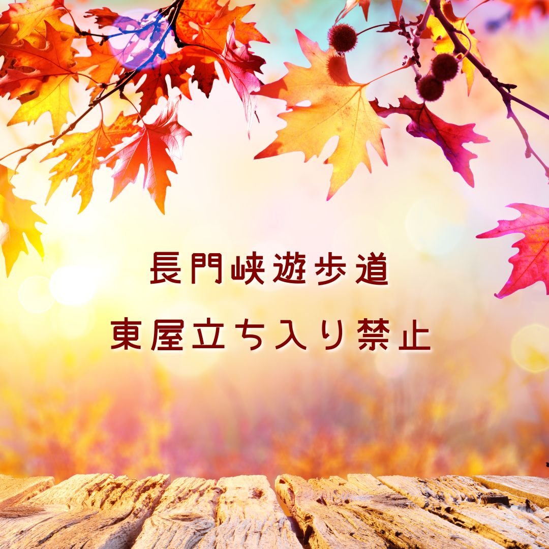 道の駅長門峡遊歩道から約一キロ歩いた場所にある東屋が傾いているため使用ができません。