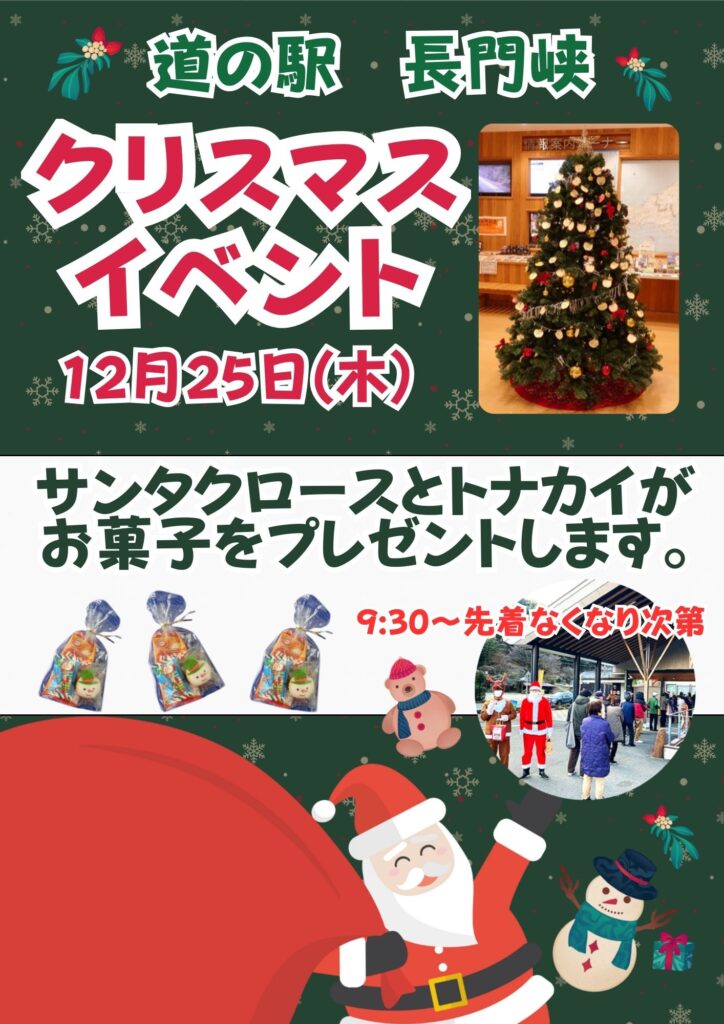 2025年 12月25日(木) 道の駅 長門峡にてクリスマスイベントが開催されます。